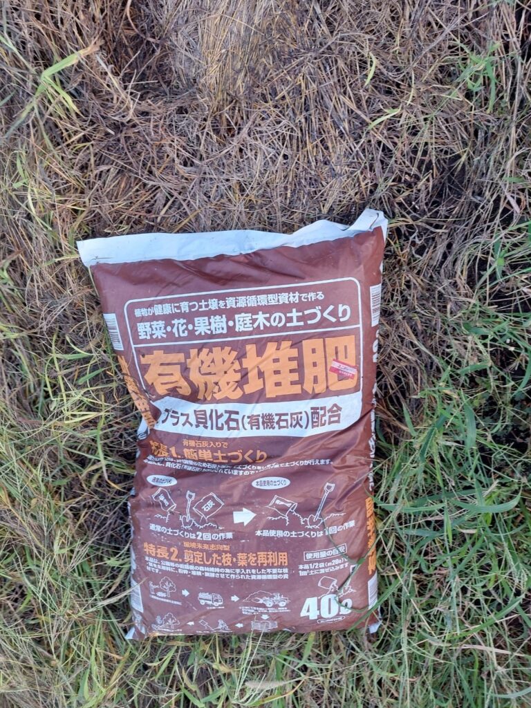 そろそろ涼しくなり冬野菜の種まきの準備にかからなければ、祭日なので 圃場の草刈りを終わらせ防草シートを張って次回は畝づくりをして堆肥をまく予定だが、1㎡=4kと言われているが、約36㎡=144㎏が必要? 堆肥が40Lと書かれているが、15㎏でよいのかな?