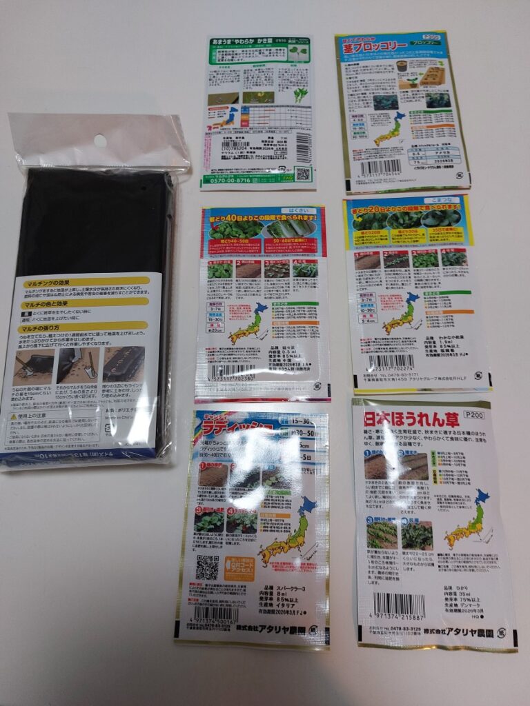やっと秋冬野菜の種まきを9/28と10/12に行う。ホームセンターで初心者向けの種を購入。苗はブロッコリーと春菊を購入、