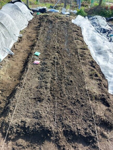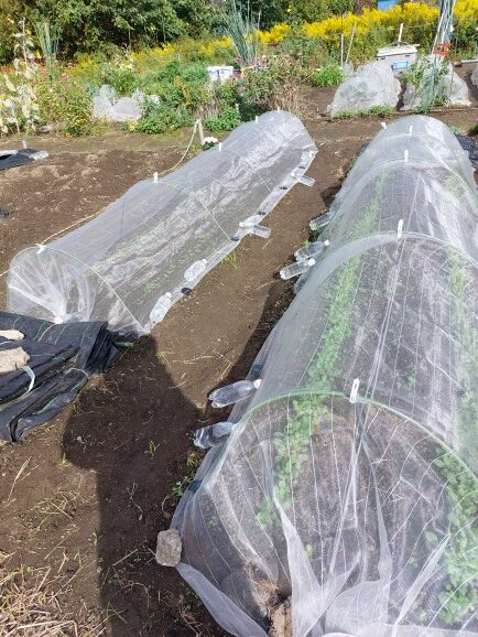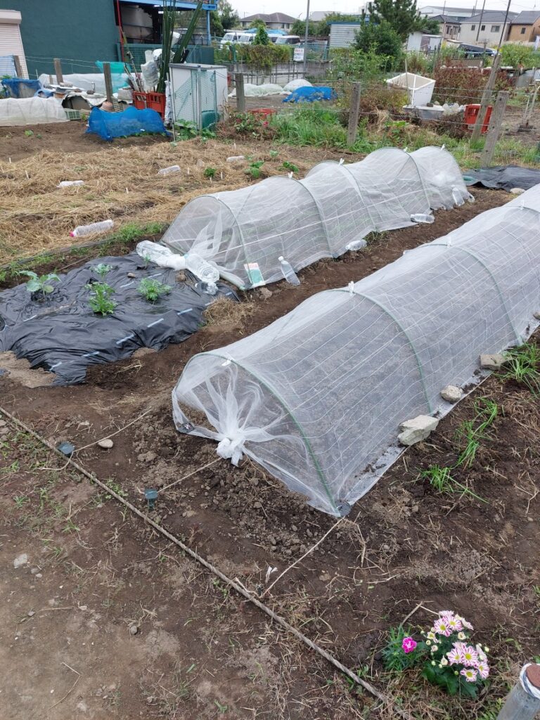 いただいたニラも一緒に種まきと植え付けを行い防虫ネットをかけて生育を見守ることにした。さあ無事に育ちますように。
